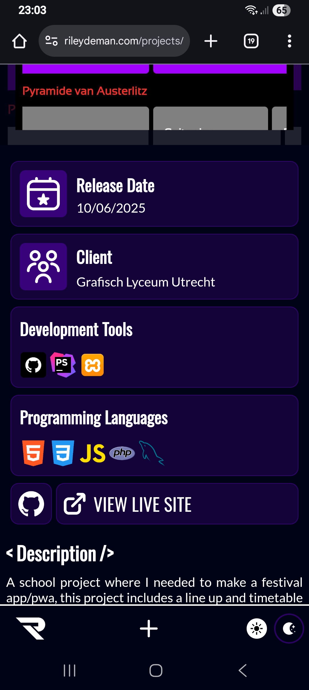 BACK TO PROJECTS PROJECT WEBSITE rileydeman Portfolio Website Release Date 09/09/2024 Client rileydeman (me) Development Tools Programming Languages VIEW LIVE SITE Description Description coming soon!